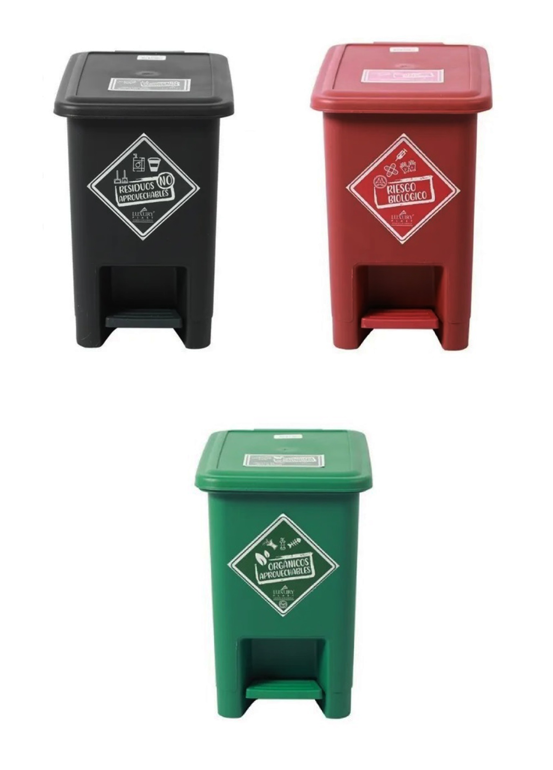 papelera 8 litros pedal Luxury x 3 nvr